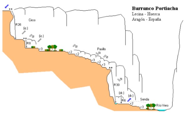 - Acceso: Combinación de vehÃculos: Dejamos un coche el el Puente de las Gargantas (Ctra HU 340, de Colungo a Lecina), y el segundo coche siguiendo la misma carretera que va subiendo, y unos 8 km después, antes de llegar al parking del Portiacha, eremos entrada a mano derecha.