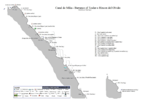 LA CANAL MIKA, la aproximación a realizar es la misma que para el barranco del Teular, una vez llegados al âpas del contadorâ, un pequeño collado que se observa claramente desde el inicio del sendero, habremos llegado al inicio de nuestro descenso. En el mismo collado y mirando hacÃa noroeste, nuestra izquierda según subimos, veremos la continuación de la cresta del bardals, subiremos por esta crestita, la cual se encuentra perfectamente instalada con 4 parabolts para ir asegurados. Una vez arriba y tras una roca observaremos el primer destrepe que se encuentra instalado con un spit. Se puede destrepar sin asegurar pero con mucha precaución. Este nos dejará en la cabecera del R1. Decir que este descenso encontraremos varias pedreras y que es necesario llevar precaución, ya que al pasar por ellas nos pueden caer piedras R1.- 15m. Instalado con quÃmicos con cadena. R2.-20m. Dos quÃmicos con doble argolla (Repisa para 2/3 personas máx.) R3.- 25m. Dos quÃmicos con doble argolla (Repisa para 2/3 personas máx.) R4.- 10m. Dos quÃmicos (Destrepable por la derecha). Este rapel nos deja en el cauce del Barranco del Teular, justo a 10 metros de la primera instalación. Realizando la canal de Mika, nos evitamos realizar una complicada bajada de pedrera por la cara norte de la cresta hasta el inicio del barranco y por la que tenÃamos que atravesar diferentes zonas de zarzas. Al mismo tiempo le añadimos 4 rapeles más a nuestra aventura del dÃa.