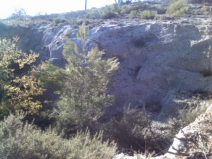 Subimos hacia el Este, hacia la montaña (Sierra de Aitana), unos 100 m de desnivel, hasta llegar al Camà del Comptador (PR-CV 9, dirección S).